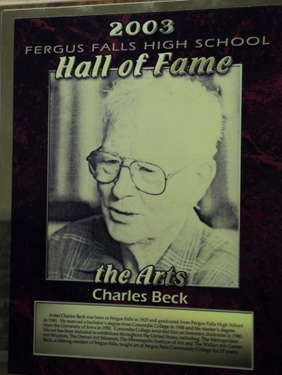 Artist Charles Beck was born in Fergus Falls in 1923 and graduated from Fergus Falls High School in 1941. He received a bachelor’s degree from Concordia College in 1948 and his master’s degree from the University of Iowa in 1950. Concordia College awarded him an honorary doctorate in 1980. His art has been included in exhibition throughout the United States, including: The Metropolitan Art Museum, The Denver Art Museum, The Minneapolis Institute of Art and The Walker Art Center. Beck, a lifelong resident of Fergus Falls, taught art at Fergus Falls Community College for 27 years.