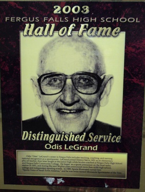 Odis “Oats” LeGrand‘s career in Fergus Falls includes teaching, coaching, and earning national recognition as a sportscaster. LeGrand joined District 544 in 1951 as an elementary phy. ed. teacher, then later taught at the junior high while he also coach at Fergus Falls High School and Fergus Falls Community College. He began as a sports announcer on the local radio station in 1951, and during the next 50-plus years announced more than 4,000 high school, college and independent sporting events. In 1985, Sports Illustrated named him “Sports Voice of Small Town America,” and he was twice named Minnesota Sportscaster of the Year.
