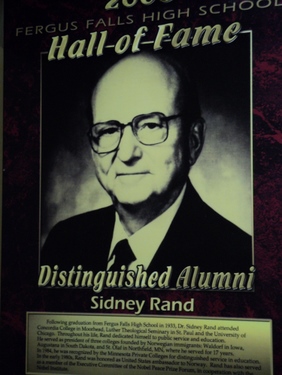 Following graduation from Fergus Falls High school in 1933, Dr. Sidney Rand attended Concordia College in Moorhead, Luther Theological Seminary in St. Paul and the University of Chicago. Throughout his life, Rand dedicated himself to public service and education. He served as president of three colleges founded by Norwegian immigrants: Waldorf in Iowa, Augustana in South Dakota, and St. Olaf in Northfield, MN, where he served for 17 years. In 1984, he was recognized by the Minnesota Private Colleges for distinguished service in education. In the early 1980s, Rand was honored as United States ambassador to Norway. Rand has also served as a member of the Executive Committee of the Nobel Peace Prize Forum, in cooperation with the Nobel Institute.