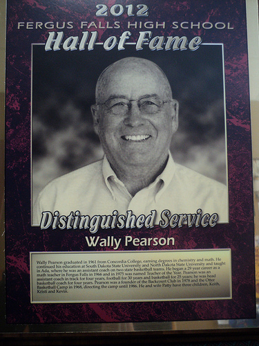 Wally Pearson graduated in 1961 from Concordia College, earning degrees in chemistry and math. He continued his education at South Dakota State University and North Dakota State University and taught in Ada, where he was an assistant coach on two state basketball teams. He began a 29 year career as a math teacher in Fergus Falls in 1966 and in 1975 was named Teacher of the Year. Pearson was an assistant coach in track for four years, football for 30 years and basketball for 25 years; he was head basketball coach for four years. Pearson was a founder of the Backcourt Club in 1978 and the Otter Basketball Camp in1968, directing the camp until 1986. He and wife Patty have three children, Keith, Kristi and Kevin.