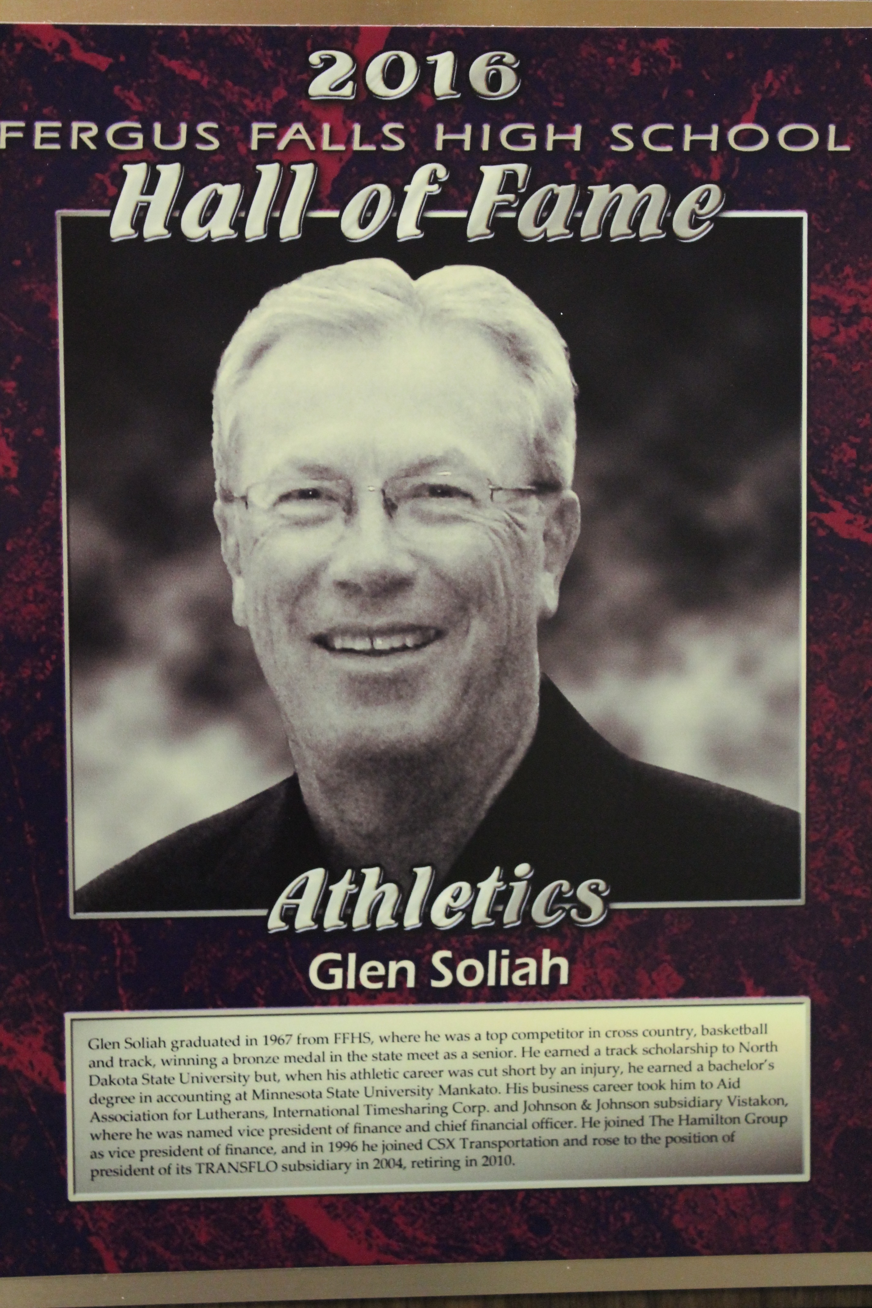 Glen Soliah graduated in 1967 from FFHS, where he was a top competitor in cross country, basketball and track, winning a bronze medal in the state meet as a senior. He earned a track scholarship to North Dakota State University but, when his athletic career was cut short by an injury, he earned a bachelor’s degree in accounting at Minnesota State University Mankato. His business career took him to Aid Association for Lutherans, International Timesharing Corp. and Johnson & Johnson subsidiary Vistakon, where he was named vice president of finance and chief financial officer. He joined The Hamilton Group as vice president of finance, and in 1996 he joined CSX Transportation and rose to the position of president of its TRANSFLO subsidiary in 2004, retiring in 2010.