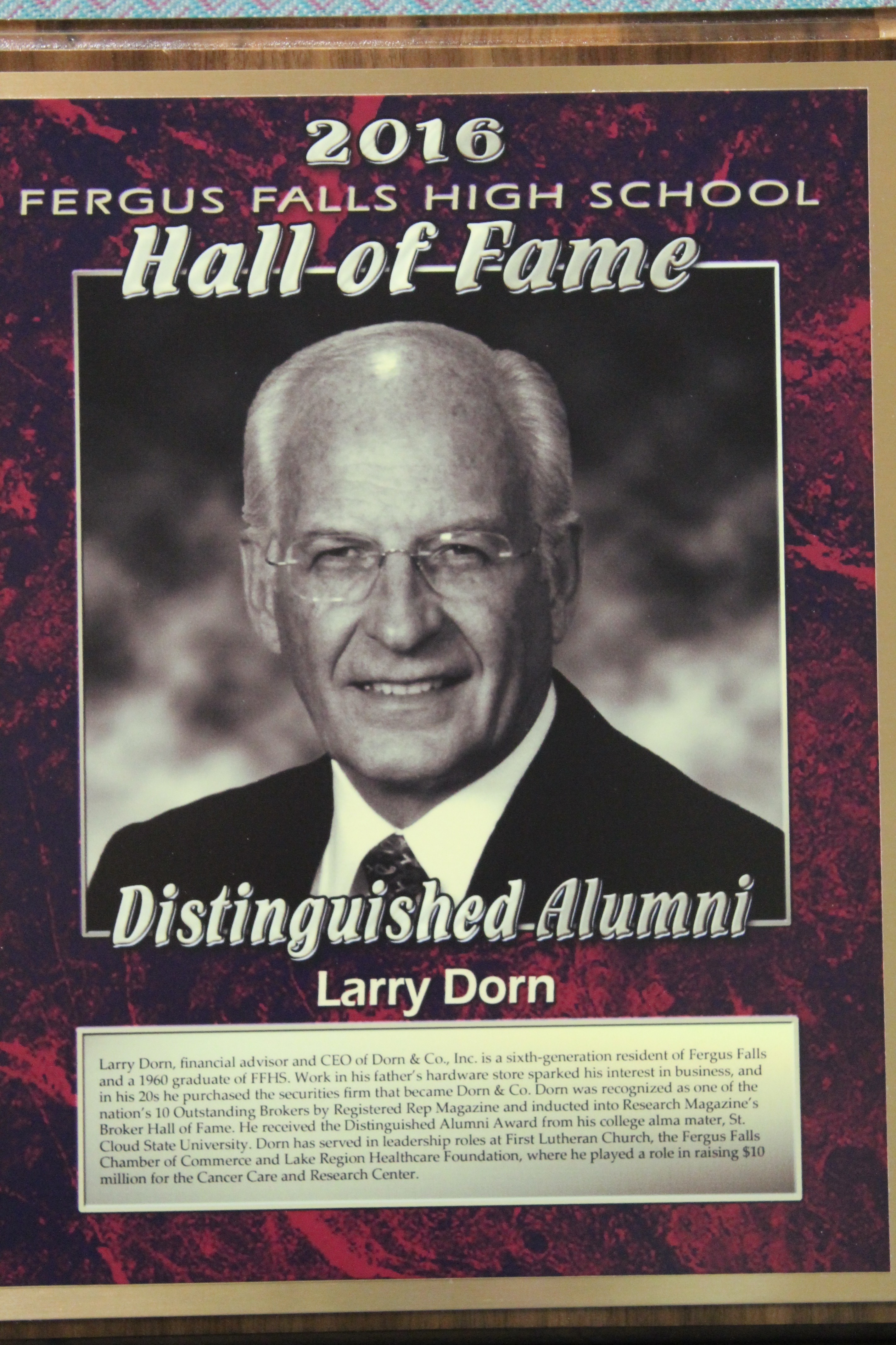 Larry Dorn, financial advisor and CEO of Dorn & Co., Inc. is a sixth-generation resident of Fergus Falls and a 1960 graduate of FFHS. Work in his father’s hardware store sparked his interest in business, and in his 20s he purchased the securities firm that became Dorn & Co. Dorn was recognized as one of the nation’s 10 Outstanding Brokers by Registered Rep Magazine and inducted into Research Magazine’s Broker Hall of Fame. He received the Distinguished Alumni Award from his college alma mater, St. Cloud State University. Dorn has served in leadership roles at First Lutheran Church, the Fergus Falls Chamber of Commerce and Lake Region Healthcare Foundation where he played a role in raising $10 million for the Cancer Care and Research Center.