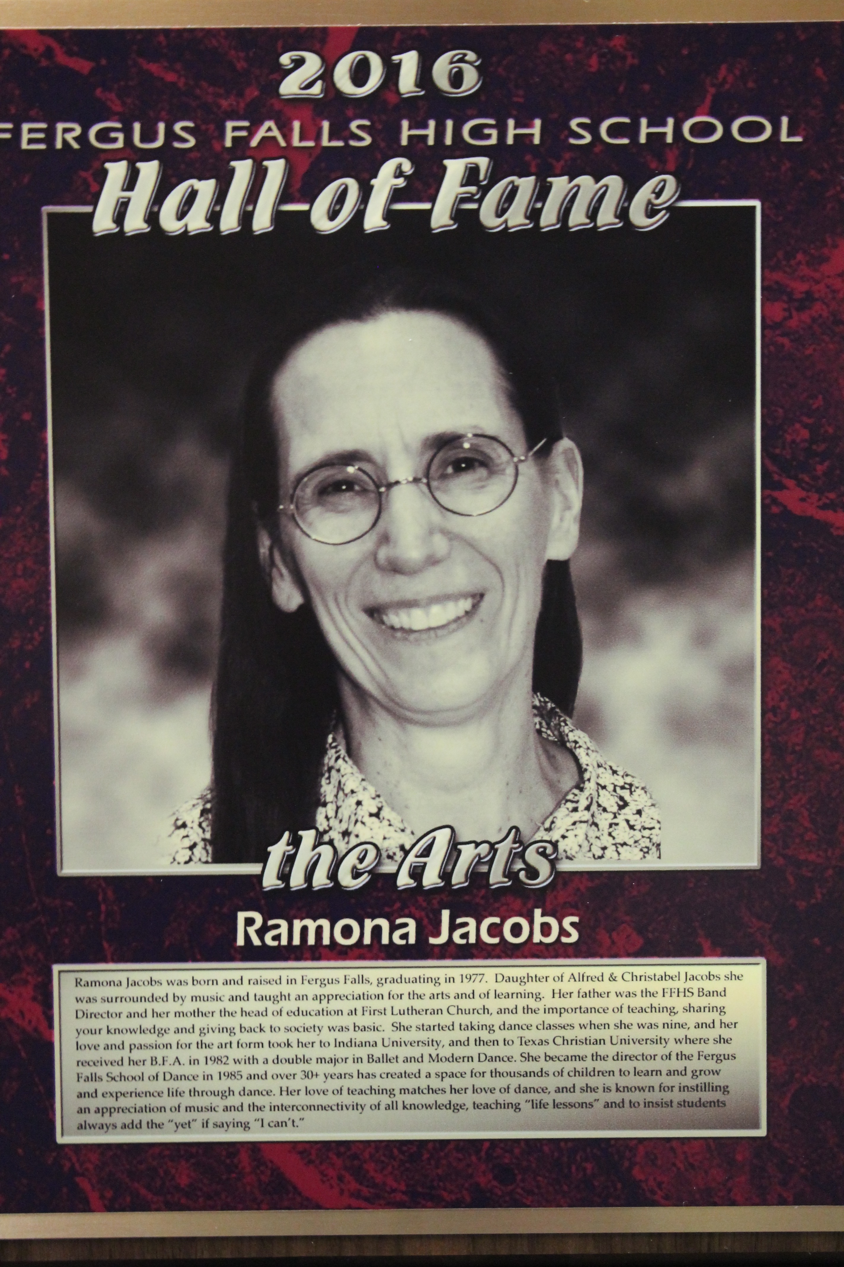 Growing up in Fergus Falls, Ramona Jacobs was surrounded by music and taught an appreciation for the arts and learning by her parents, Alfred and Cristabel. She began taking dance classes when she was 9 and, following graduation from FFHS in 1977, her passion for dance took her to Indiana University and then to Texas Christian University, where she earned a bachelor’s of fine arts degree in 1982 with a double major in ballet and modern dance. Her love of dance matched by her love of teaching, she became director of the Fergus Falls School of Dance in 1985. Over 30-plus years, she has instilled an appreciation of music and created a space where thousands of children have learned, grown and experienced life through dance.